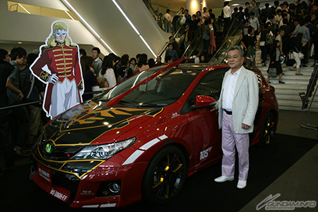 ▲舞台挨拶の後には「フル・フロンタル専用オーリス」と池田氏の記念撮影も。車両は新宿ピカデリー1Fで5月30日(金)まで展示中。