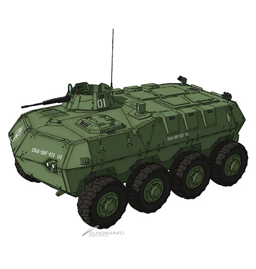 ジオン自治共和国軍に配備されている、自国で開発が行われた装輪装甲車。歩兵や人員、戦闘に必要な物資の輸送を前提としたAPC(Armoured Personnel Carrier=兵員装甲輸送車)として運用されている。