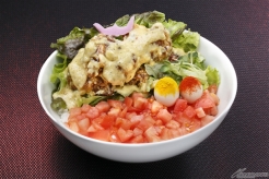 【左】赤とツノと3倍をこよなく愛するシャアさんのどんぶり~たっぷりタルタル唐揚げ丼~