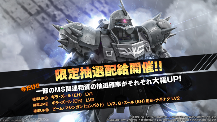 『機動戦士ガンダムNT』のモビルスーツ「ギラ・ズール(EH)」の抽選確率が大幅アップ。