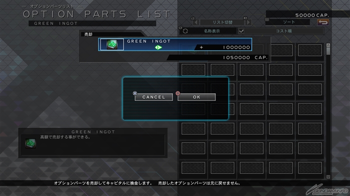 「GREEN INGOT」は、売却することによって100万キャピタルを入手できるオプションパーツとなっている。