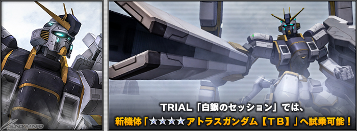 TRIAL「白銀のセッション」では新機体「アトラスガンダム【TB】」へ試乗が可能なほか、BOSS「呪いと復讐と…」ではシャンブロとクィン・マンサ(アンネローゼ機)の連戦に挑戦できる。