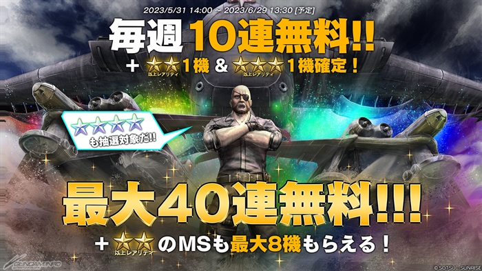 最大40連!★★以上レアリティのMSが最大8機獲得可能な無料抽選配給!