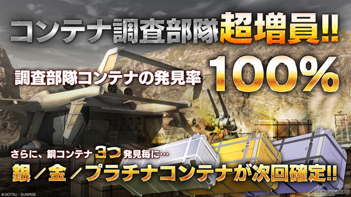 期間中は調査部隊のコンテナ発見率が100%に上昇。