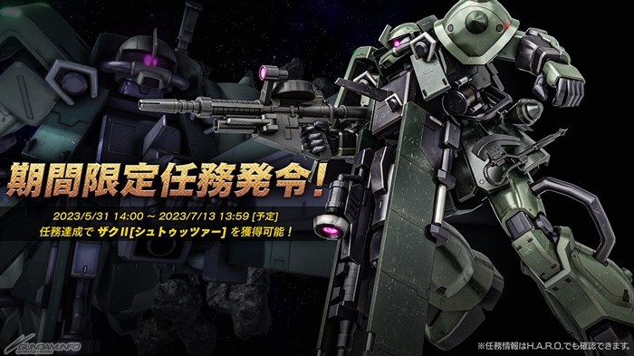 期間中、期間限定の特別な任務が開催。任務を達成することで、新機体「ザクII[シュトゥッツァー]」や合計200,000DP、整備士増員チケット[★]~[★★★]50枚ずつをはじめとする、特別な報酬が獲得できる。