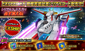 ● 「EXCEED★5 戦艦」が初登場!実装を記念して、初のEXCEED★5戦艦である「ホワイトベース」を入手できるシリアルコード【EXSHIP】公開中!