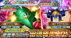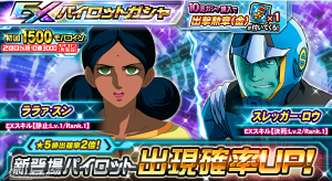 ● 「EXユニットガシャ」「EXパイロットガシャ」に、新規ユニット「★5 エルメス[武器:メガ粒子砲]」や、新規パイロット「★5 ララァ・スン(No.2153)<EXCEED強化後>」ほか登場!