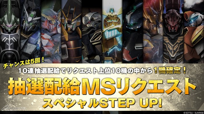 リクエスト上位10機のうち1機が確定で入手できる「抽選配給MSリクエスト スペシャルSTEP UP」開催!