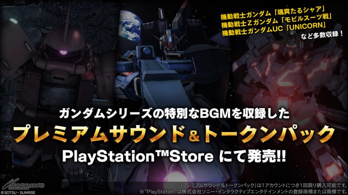 10トークンに加え、ガンダムシリーズを彩るアニメ&ゲームサウンドが多数収録された「プレミアムサウンド&トークンパック」の販売が、PlayStation™Storeにてスタートした。