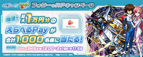モンストキャンペーン公式Xアカウントをフォローし、対象の投稿を期間内にリポストすると、抽選で最大1万円分の「えらべるPay」が計1,000名に当たる。奮って参加してみよう。