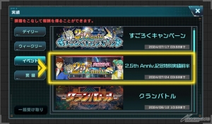 2.5周年を記念して、「2.5th Anniversary記念キャンペーン」を開催中。期間中は、ダイヤ6,000個が手に入る限定ログインボーナスや特別実績などが開催されている。
