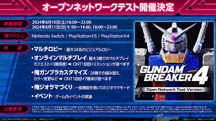 台風10号の影響により、8月31日(土)に大阪・ヨドバシカメラ マルチメディア梅田にて開催を予定しておりました「ガンダムブレイカー4」店頭体験会は中止となりました。
