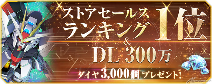 App StoreとGoogle Playにて好評配信中のスマートフォンアプリゲーム「SDガンダム ジージェネレーション エターナル」が、4月30日(水)に全世界ダウンロード数300万件を突破し、一部地域でストアセールスランキング1位を達成した。