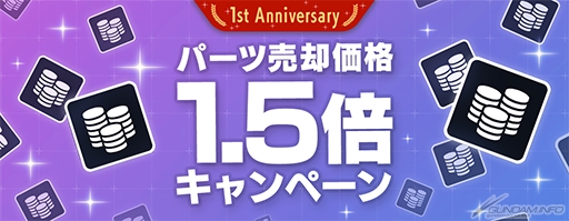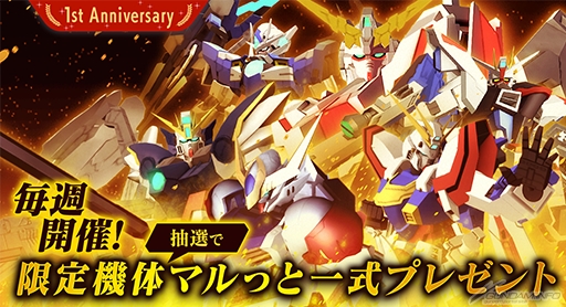 さらに、今までに開催された「創快祭」と「ガンブレフェス」に登場した全ての限定機体のパーツがラインナップされた「限定機体ピックアップガシャ」も開催中となっているほか、7月31日(金)に1周年を迎えるにあたり様々なキャンペーンも引き続き実施中なので、こちらもあわせて紹介しよう。