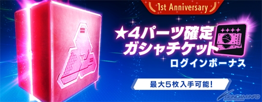 参加には「【期限付き】1stアニバチケット」が必要となり、期間中に開催されるログインボーナスで最大20枚入手可能。