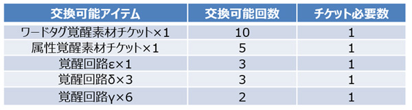 「★6覚醒素材交換チケット」は交換所で以下アイテムと交換できます。