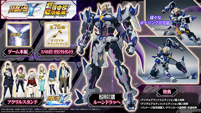 オリジナルメカのロボットフィギュア「ROBOT魂 <SIDE OG> ルーンドラッヘ」等が同梱する超限定版ほか、ダウンロードコンテンツがセットになったデジタルデラックスエディション、デジタルアルティメットエディションの予約を受付中だ。