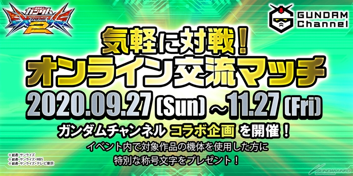 また、「ガンダムチャンネル」とコラボした特別なオンライン交流マッチが9月27日(日)に開催されるほか、「EXVS. シリーズ」最新情報も公開されたので、あわせて紹介しよう。