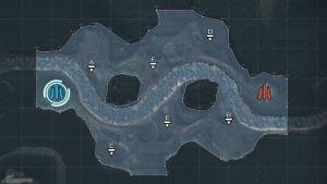 木々は視界を遮ることはありつつも、射撃、移動の阻害にはならない。また、MAPの中央には河が流れ、河沿いに進めば相手の拠点にたどり着くことができる設計になっており、密林戦だけでなく水中戦も頻繁に起こる。