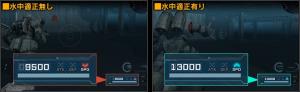 「地上適正」「宇宙適正」に加えて、「水中適正」が機体の環境適正の項目に新たに追加された。