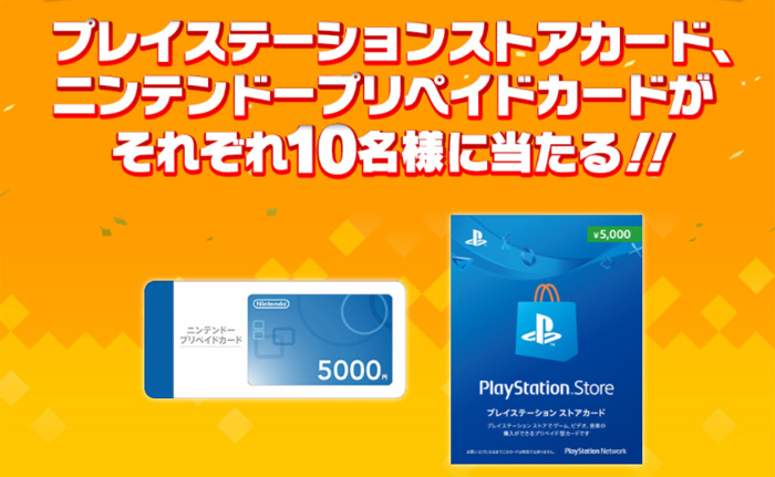 本セールの開催を記念し、抽選で10名に「ニンテンドープリペイドカード 5,000円分」および「プレイステーション ストアカード 5,000円分」が当たる「バンダイナムコエンターテインメント ニューイヤーセール フォロー&リツイートキャンペーン」が開催中。