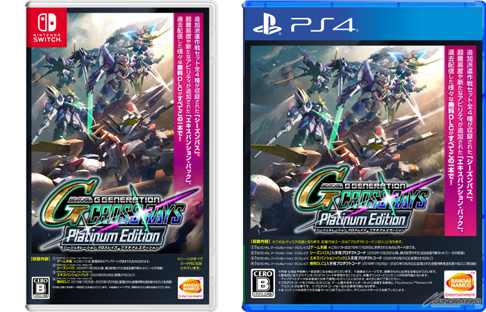 「プラチナムエディション」は、ゲーム本編に加えて、追加派遣作戦セット全4種が収録された「シーズンパス」や超難易度や新たなアビリティが追加された「エキスパンション・パック」、過去配信した様々な無料DLCを追加収録。「SDガンダム ジージェネレーション クロスレイズ」を余すことなく遊び尽くせる内容となっている。