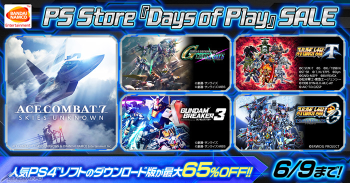 バンダイナムコエンターテインメントでは、本日5月26日(水)より、PlayStation®4のダウンロード版ゲームがお得に買える「Days of Play」セールがスタートした。
