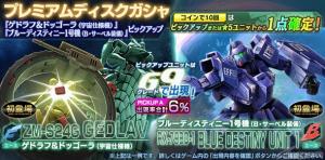 - 「プレミアムディスクガシャ」に「ゲドラフ&ドッゴーラ(宇宙仕様機)」と「ブルーディスティニー1号機(B・サーベル装備)」が新登場!