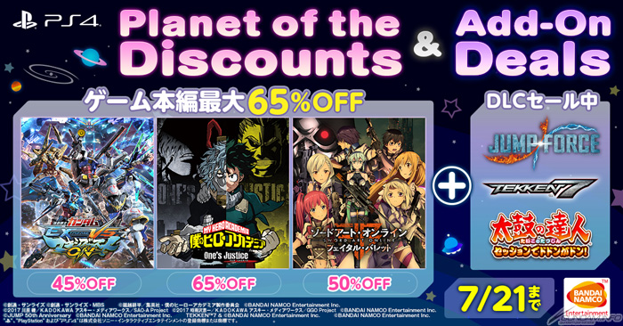 バンダイナムコエンターテインメントでは、本日7月7日(水)より、PlayStation®4のダウンロード版ゲームがお得に遊べる「Planet of the Discounts」がスタートした。