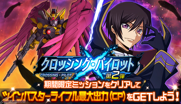 クロッシング・パイロット第2弾の第3話をクリアすることで、ゼロがウイングガンダムゼロリベリオンに乗り換えられるようになる。また、ウイングガンダムゼロ(ヒイロ・ユイ)やガウェイン(ゼロ)を入手していない場合でも、クロッシング・パイロット第2弾の第1話をクリアすることで入手できる。開催期間は、4月15日(水)13:59までの予定。