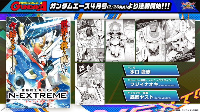 また、2月26日(土)発売「月刊ガンダムエース4月号」にて、彼らがそれぞれの想いを胸に「N-EXTREMEガンダム」とともに活躍するコミック「機動戦士ガンダム N-EXTREME」が連載スタートする。