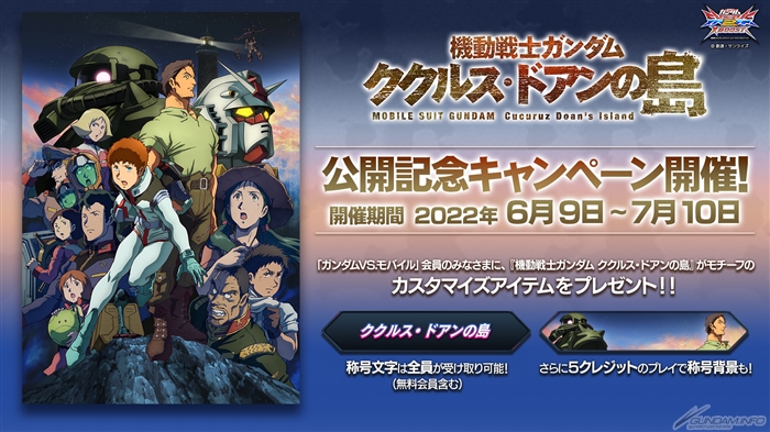 「ガンダムVS.モバイル」会員を対象に、『ククルス・ドアンの島』モチーフのカスタマイズアイテムがプレゼントされる。
