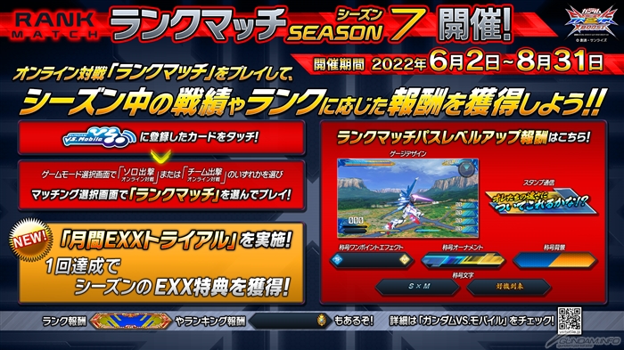 プレイ状況やシーズン終了時のランクに応じてアイテム解放チケットやGPが獲得できる「ランクマッチ シーズン7」が好評開催中。