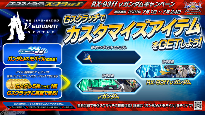 新機体「RX-93ff νガンダム」参戦を記念して、7月1日(金)から24日(日)の期間、「エクストラGスクラッチ」を開催。