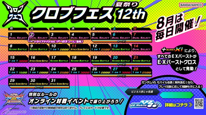 8月は「クロブフェス12th 夏祭り」が毎日開催され、日によってルールが変わるので、事前にチェックしてオンライン対戦イベントをみんなで盛り上がろう。