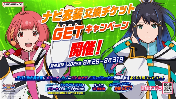 モバイル会員全員に、メリーナとカノのバトルナビ、プレイヤーナビ出撃回数を各100回プレゼントする。