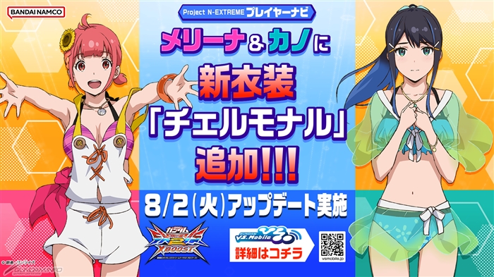 8月2日(火)のアップデートにて、プレイヤーナビ「メリーナ・マーロンフィッツ」「カノ・クランズ」に、新衣装「チェルモナル」が追加。