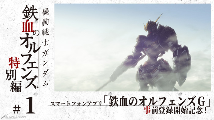 App Store・Google Play向けアプリケーション「機動戦士ガンダム 鉄血のオルフェンズG」のプラットフォーム事前登録受付開始を記念した『機動戦士ガンダム 鉄血のオルフェンズ 特別編』の配信が、明日11月1日(火)19:00よりガンダムチャンネルにてスタートする。以降毎日1話ずつ、各話2週間限定で配信予定。