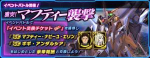 - イベントバトル「激突!マフティー襲撃」開催!報酬として「★4 マフティー・ナビーユ・エリン」や「★4 ギギ・アンダルシア」が獲得可能!
