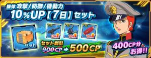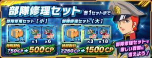 - 「機体攻撃/防御/機動力10%UP【7日】セット」&「部隊修理セット【大】【小】」販売!