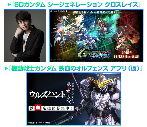 またブース内ステージでは、「SDガンダム ジージェネレーション クロスレイズ」と「機動戦士ガンダム 鉄血のオルフェンズ アプリ(仮)」の最新情報を公開する「ガンダムゲームスペシャルステージ」が実施される。