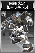 ジオン側報酬 陸戦型ガンダム【鹵獲機】 HP:3310 回避:20 装甲:46 盾HP:275 速度:25m/s 移動:地上(歩行) ビーム・サーベル 命中:69 威力:131 格闘攻撃 射程: 0m~ 40m 移動攻撃:× 100mmマシンガン 命中:60 威力: 75 間隔:0.40秒 射程: 40m~275m 移動攻撃:○ 胸部バルカン砲 命中:60 威力: 55 間隔:0.30秒 射程: 40m~125m 移動攻撃:○ |