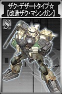 連邦側報酬 ズゴック【鹵獲機】 HP:3140 回避:23 装甲:46 盾なし 速度:24m/s 移動:水陸(歩行) アイアン・ネイル 命中:74 威力:123 格闘攻撃 射程: 0m~ 40m 移動攻撃:× 腕部メガ粒子砲 命中:70 威力:118 間隔:1.20秒 射程: 40m~275m 移動攻撃:○ |