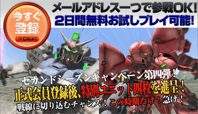 ただいまガンダムタクティクスオンラインでは正規隊員登録後、特殊ユニットが4枚もらえる『セカンドシーズンキャンペーン第4弾』を実施中だ。この機会に是非登録してみよう。