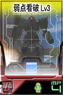 搭載コストが低いぶん、全体的に能力は低めだが、射撃攻撃力を大幅に上昇させるスキルを所持している。