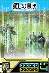 レアリティ G 名前 癒しの息吹 MP 4 時間 持続:15秒 効果対象 全ての機体 使用可能回数 1回 リロード - 効果 敵味方を問わず、全ての機体のHPが毎秒34回復する。 |