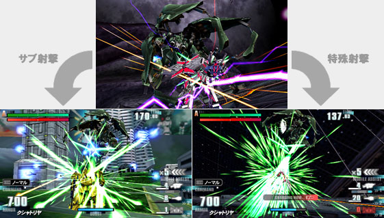 相手を拘束した後、格闘ボタンの追加入力で格闘、サブ射撃でファンネルでの一斉攻撃、