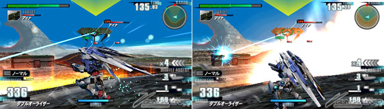マルチロックオンをした場合は、ドラグーンを射出して拡散ビームを放ち、2機を同時に攻撃することができる。