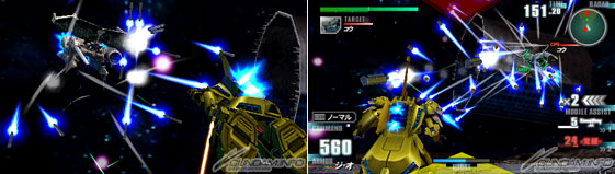 ▲特殊射撃の拡散メガ粒子砲は、射程こそ短いが、かなり広範囲を攻撃できる。