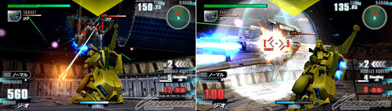 モビルアシストのゲイツは、エクステンショナル・アレスターで攻撃。当たれば相手をスタンさせられる。